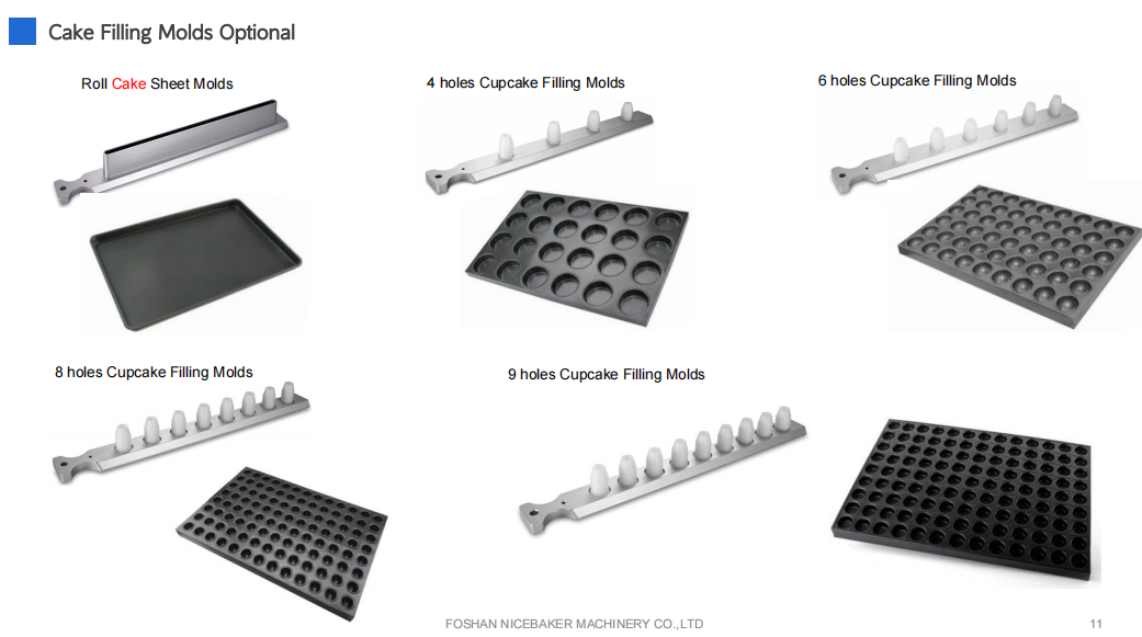After you buy cake depositor machine from us , you need to send us tray drawing to us , then we could customize a exact size filling moulds for your trays . See our cake depositor filling moulds as below samples :